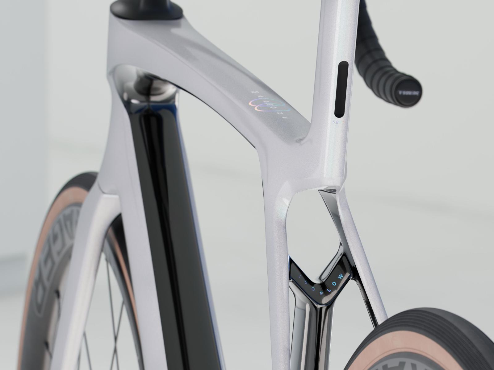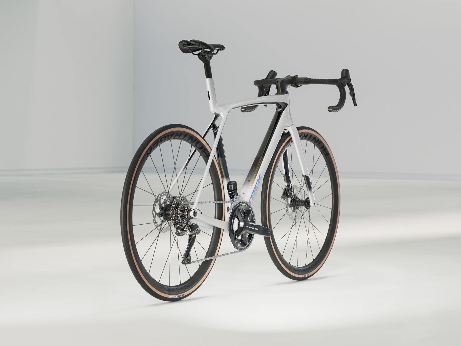 Einen ultraleichten Rahmen aus 500 Series OCLV Carbon mit aerodynamischem Profil und innovativer IsoFlow-Komforttechnologie. Eine präzise elektronische Shimano 105 Di2 2x12-Schaltung mit Technologien aus höher angesiedelten Gruppen und schlauchlose Bontrager Aeolus Elite 35 Carbonlaufräder.