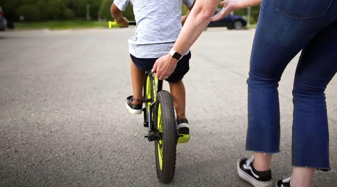 Dank des unter dem Sattel versteckten Griffs kannst du deinem Nachwuchs beim Erlernen der Grundlagen eine helfende Hand reichen.